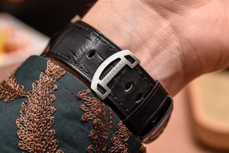 几乎很容易忘记,内部制造和开发的沛纳海 Calibre P.2005/GLS 手动上链机芯也有一个陀飞轮。唉,它是在几乎所有“超级奢华”手表都需要陀飞轮的时候开发的。如今,陀飞轮并没有完全过时,但它作为一种独特的身份象征的出现确实减轻了很多重量。P.2005/GLS 中的陀飞轮实际上有点新奇,因为它的旋转轴。这款沛纳海腕表中的陀飞轮不是在陀飞轮框架的垂直轴上旋转,而是在其水平轴上旋转。我也喜欢这是罕见的 4Hz(28,800bph)陀飞轮机芯,而不是 3Hz,这是大多数陀飞轮摆轮的工作频率。