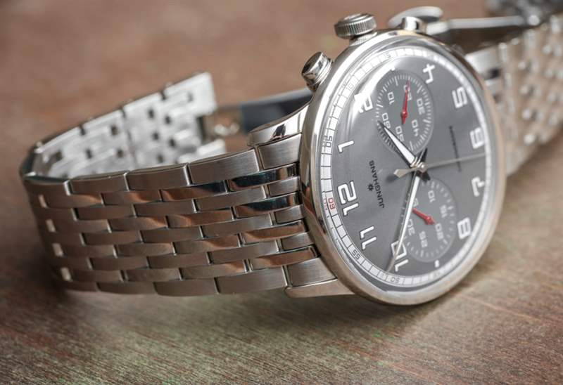 目前,Junghans 提供了几个不同版本的 Meister Driver Chronoscope。这些面孔在图片参考 027/3686.44 中提供灰色、深黑色/灰色以及双色调“沙”米色。附在 Meister Driver Chronoscope 上的是一条合身的皮革表带或这款漂亮的九链节钢金属表链。作为一个手镯人,我当然选择了那个选项。