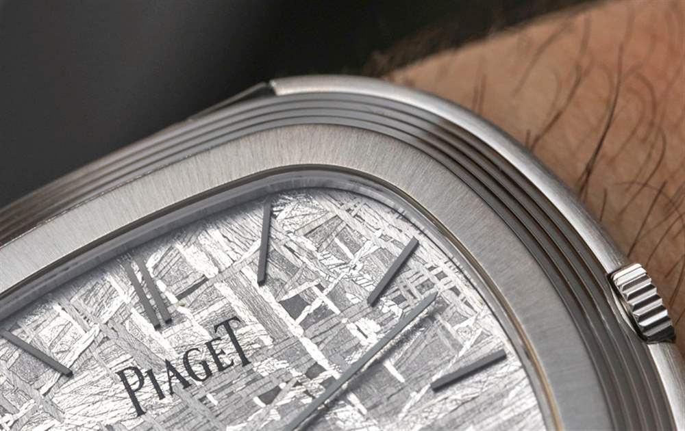在我看来,天然浅灰色陨石表盘很漂亮。Piaget 标志印在蓝宝石水晶的背面,18k 白金指针(哑光黑色)提供时间,甚至不提供秒数。这件作品在精神上确实是一款正装手表,尽管您每次看到它时不一定都会以这种方式出现。但是,您可以从逻辑上确定,如果它不是运动手表或其他类似的东西,那么它只能是一件事……。正装手表。