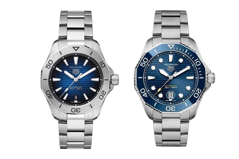 同样都隶属泰格豪雅的Aquaracer支线,这次的新款Aquaracer Professional 200,和去年Aquaracer Professional 300的细节有什么不一样?首先在单向旋转表圈的部分,前者是金属圈、后者是陶瓷圈;尺寸的话前者有40mm和30mm两种表径,还多了石英机芯的选项,相较于后者43mm而且只有机械版本,相对比较适合大多数人佩戴并且能触及女表的区块。而前者的链带中央链节以抛光处理,和后者整体都是雾面的链带有所区隔;另外两者在指针、时标和日期窗的设计也都不同,Professional 300一看就是比较运动感的配置。