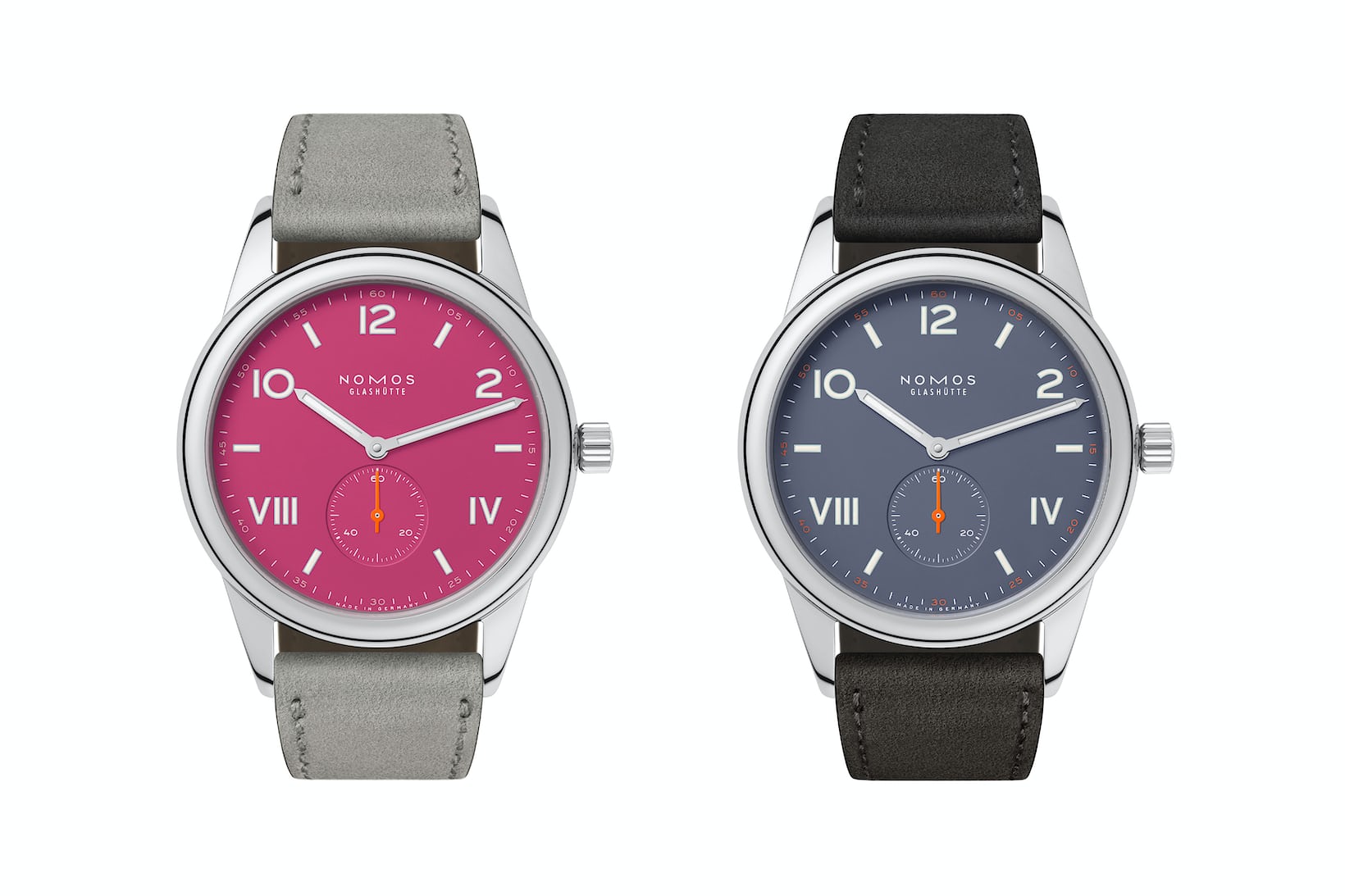 NOMOS 一向俏皮有趣,但今年他们用一对粉色和紫色的 Club Campus 系列延伸款将其增加到 11 个。他们称这些颜色为“深粉色”和“蓝紫色”。Club Campus 是该品牌的“入门手表”,因此当然欢迎任何和所有表盘颜色。每个锅都有一个顶部,每个年轻的手表收藏家都有一个首选的表盘颜色。