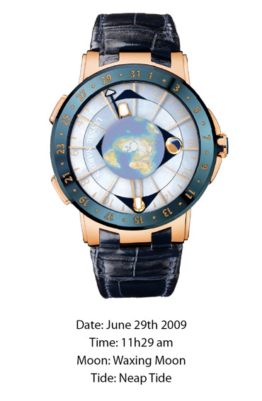 现在它变得非常酷。请注意上面有小太阳图像的光盘。这也围绕着手表上的地球旋转。太阳的位置实际上被正确放置,以便您可以想象光线从它照射到月球上。因此,月亮球的“点亮”面将始终面向太阳圆盘。明白我的意思吗?因此,其圆盘上的月亮球被制作成转动,以便照明部分始终面向地球,并且太阳被正确放置,因为它相对于地球,向您展示它的光如何从我们的地球角度照亮月球。抱歉,如果其中任何一项变得复杂。稍微研究一下图像,一切都会清楚的!