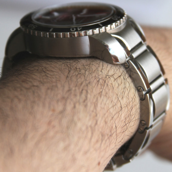 Sport Evolution上的手镯是这是一款豪华手表的标志。这款格拉苏特原创不是轻便的手表,但它是坚固的。很多金属都在手镯中,采用很酷的无间隙设计。这意味着您无法在链接之间看到您的皮肤。在外面,你有一个有趣的设计,隐藏了一个非常复杂的结构。运动进化有一个有趣的选择,在哪里打磨。例如,潜航者型一直以全拉丝手镯而闻名,而GMT Master II的兄弟手表则有一个外侧有拉丝链节,内侧有抛光链节。运动进化与此相反。外部较细的链接进行镜面抛光,而较大的内部链接经过刷涂。这是一个非常时尚的选择,在这一点上纯粹是装饰性的。看看手镯的侧面,你会看到很多螺丝,暗示手镯的复杂结构——戴在手腕上非常舒适。