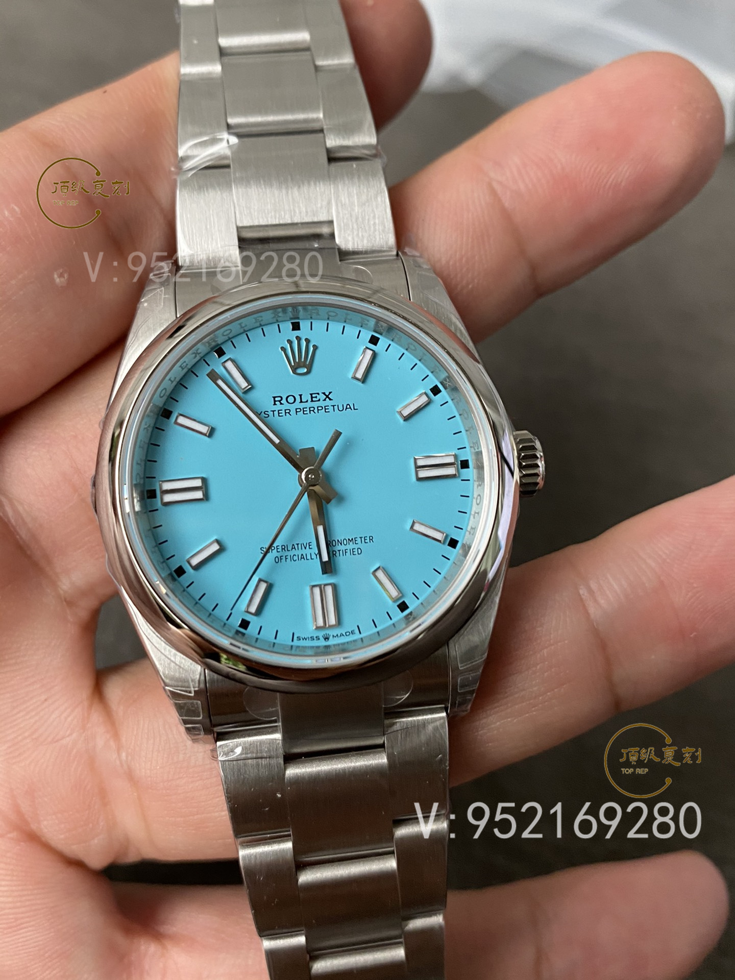 最近VS厂也涉猎了一款劳力士蚝式恒动型复刻表,这款表之前最火的应该就是EW厂了,不过VS厂只做了36mm的尺寸,蒂芙尼蓝盘,这也可能是厂家试试水,可能后续也是准备进入这个市场了,毕竟蚝式恒动系列一直没有一个真正顶级的工厂去做,这次VS厂也是搭载了丹东3235机芯,除了没办法做到一档机以外,外观上没有任何槽点,入手绝对值得。