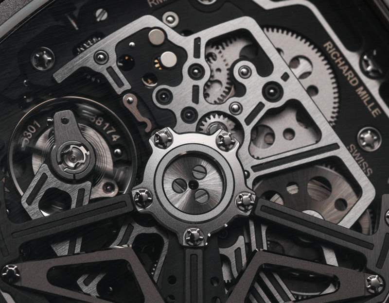 考虑到锐角和块状结构,表壳看起来很大,但它并不算太大,佩戴起来很像卡地亚桑托斯 100 代时计。我还欣赏的是,尽管采用方形蓝宝石水晶(嗯,表背水晶为矩形),Blancarre Solid Black 表壳至少防水深度达 50 米。除了陶瓷表圈外,表壳的其余部分均由钛制成。该版本的 Blancarre 腕表采用防刮 DLC 涂层,采用 5 级钛黑色。表壳设计有很多丰富的细节,包括钛金属表壳侧面的垂直条纹。表圈为 37 毫米见方,加上侧面,表壳宽度约为 40 毫米。它的表耳与表耳之间的距离约为 52 毫米,表壳整体厚度约为 12 毫米。