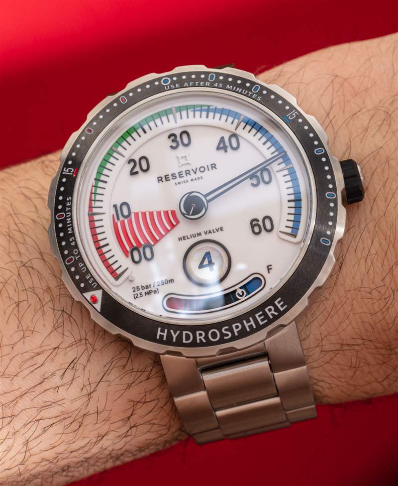 Reservoir 生产了几个版本的 Hydrosphere 时计,其表盘颜色和表壳材料各不相同。我特别喜欢 Hydrosphere Air Gauge,因为正如产品名称所暗示的那样,表盘很容易让人联想到模拟空气压力计。这种特殊的 SCUBA 潜水仪器的一个有趣的事情是,大多数 BCD 装置(装有空气罐的背心潜水员服装)都有一个看起来几乎与手表相同的气压计。这意味着今天大多数休闲潜水员都使用过这样的气压计并通过视觉识别它们。为什么这很重要?因为 Reservoir Hydrosphere Air Gauge 是当今仅有的在视觉上与当今潜水设备相匹配的豪华潜水表之一。这意味着手表表盘不仅对手表爱好者来说既相关又熟悉,广告讯息广告信息结束