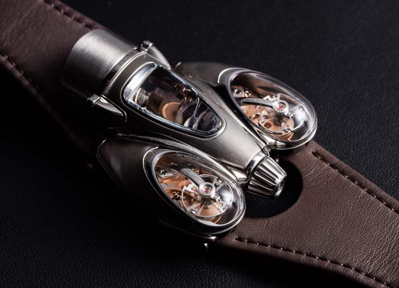 HM9 Flow 机箱的俯冲设计显然受到了一代飞机和汽车的启发,这些飞机和汽车的形状在风洞中得到了完善,以增强空气动力学性能。手表确实不需要空气动力学特性,但如果你拥有一辆具有这种外观的老式汽车,至少你可以拥有一款非常兼容的时计。我碰巧认为表壳曲线既漂亮又有趣,甚至优雅,尽管 MB&F 没有让产品看起来很女性化。