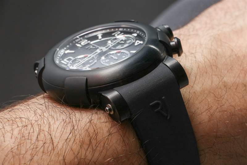 RJ 提供四种基本材料样式的 Arraw 计时码表,不考虑表壳尺寸、各种表盘颜色(但大多数是黑色)和钻石装饰选项。基本型号可能是最受欢迎的,它是钛金属的拍照版本。RJ 还生产双色 Arraw 计时码表,主要采用钛金属表壳和 18k 红金表圈,表盘颜色相匹配。当然也有全 18k 红金款。Tedeschi 不会忠实于他在 Hublot 的时间,如果不创造 Arraw 计时码表的全黑陶瓷版本 – 它比钛合金表款高出 2,400 美元(零售价14,300 美元)(如果你问我的话,有点高)。